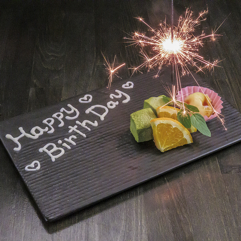 歓送迎、記念日、お祝い事などにプレートのご用意もあります。和食で培ったおもてなしの心で、しっかりとご満足いただけるように努めさせていただきます!-関内 個室 居酒屋 もビストロ糧へお越しください-