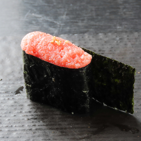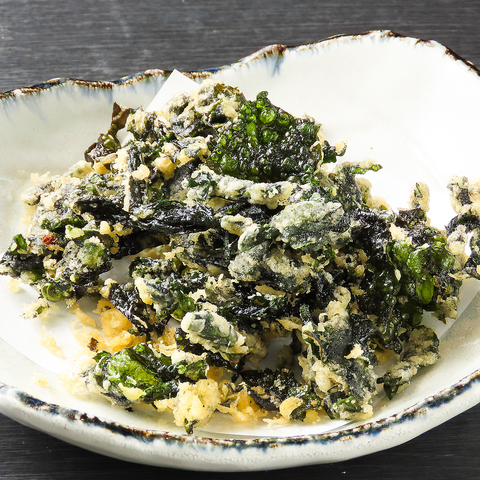 鮮度抜群のマグロのお刺身をサクサクの衣で包み揚げたシンプルな一皿。衣は熱々ながら中のマグロはレアに仕上げた、店主の腕が光る逸品です。料理とお酒のペアリングも勿論ご提案させて頂きます。-関内 寿司 居酒屋 ならビストロ糧へ-