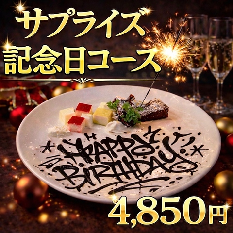 誕生日におすすめ サプライズ付 記念日コース 全6品 4,850円※2時間飲み放題付き