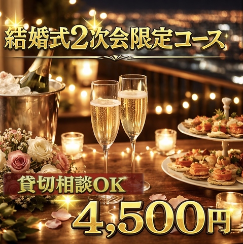 結婚式限定 2次会プランパーティ特典&2H飲み放題付き4,500円(込)