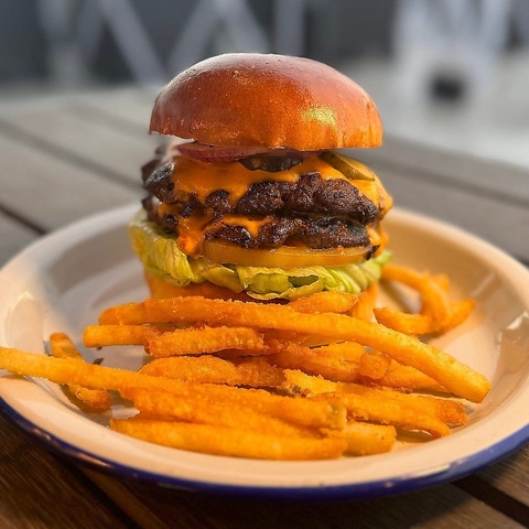 アメリカビーフ100%パティ2枚にチェダーチーズ2枚の最強の組み合わせ!何も考えず、ただただカブりついて下さい♪女の子でもペロりんちょ!!オーナーが本場アメリカで食べ歩いてたどり着いたこの味。一口で皆さんをアメリカへお連れします♪