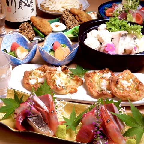 新鮮な刺身の舟盛りや金沢郷土料理の治部煮!のどぐろの炭火焼きなど日本酒に合わせるのにピッタリな北陸、石川の味覚をお楽しみください。