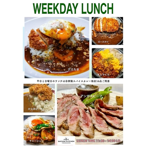 平日(月~金・日曜)ランチは自家製のスパイスカレーを中心にデミグラスやボロネーゼ、お肉など全16品のこだわり洋食をご用意!