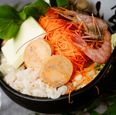 「痛風鍋」牡蠣、白子、あん肝、蟹など、旨みの宝庫と呼ばれる海の幸をこれでもかと詰め込んだ至福の一鍋。