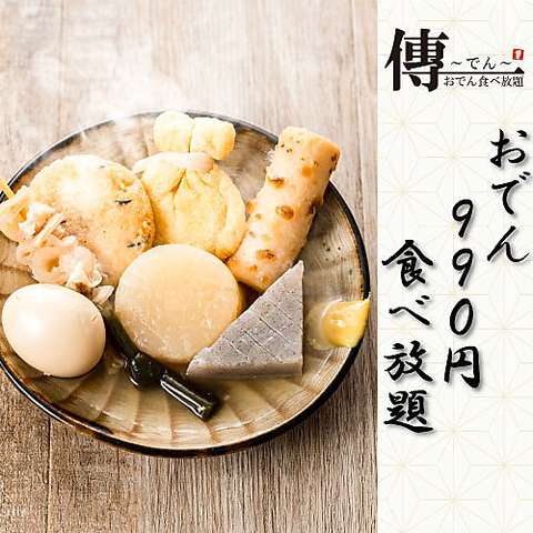 当店のおでんはなんと990円食べ放題♪もちろん味にもこだわってご提供しております!出汁の染みこんだ玉子や大根はお酒との相性が抜群です◎コースをご予約のお客様も+990円でおでん食べ放題にできちゃいます!単品のおでんも多数ご用意しておりますので、是非ご賞味ください♪