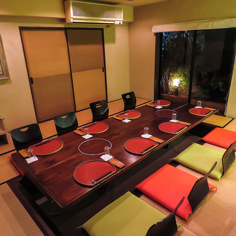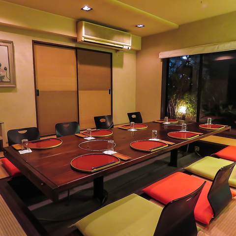 ”足元楽々”ほっと安らぐ掘りごたつ席を個室でご用意。ゆったり足をのばし、リラックスしてお食事をお愉しみください。個室のため、プライベート空間で人目を気にせずのんびりとお食事を愉しみたい方にも最適です。お席のご要望などございましたら、お気軽に店舗までお問い合わせくださいませ。ご予約お待ちしております。