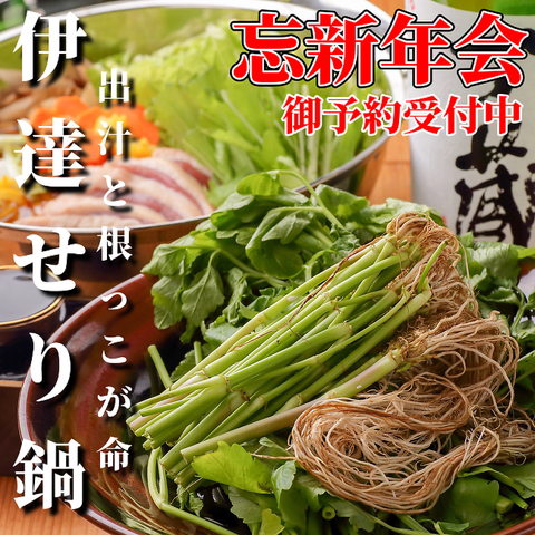 《伊達せり鍋》《仙台牛タン》《朝取れ牡蠣》《鮮魚》朝市直送!宮城美味しい食材が沢山詰まった各種宴会プランを4500円~(税込)ご用意!美味しい地元宮城料理とお酒を堪能してください!ご予算ご要望など柔軟にご対応いたします。お気軽にお問い合わせください【各種宴会に秘蔵日本酒10種前後が+500円で飲み放題に追加】