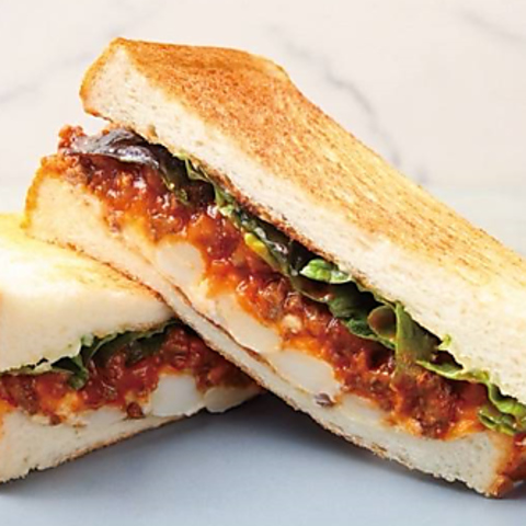 濃厚な味わいが楽しめるミートソースとポテトをサンドした、ボリューム満点のサンドイッチです。子供から大人まで、みんなが大好きな味。テイクアウトもOKです!