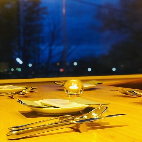 当店は、ガラス張りで開放感に溢れ、時間帯によって異なる表情を見せる空間が魅力です。お昼は明るい陽光が、夕暮れ時には茜色の空が広がり、夜は温かいランプの光が特別な雰囲気を醸し出します。女子会にも最適な隠れ家のようなお洒落な空間で、ゆったりとお過ごしいただけます◎