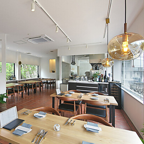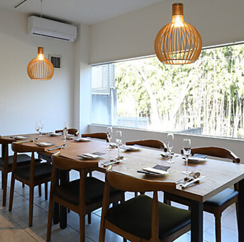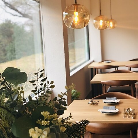 【ガラス張りで開放感あふれる空間◎】当店はガラス張りで開放感があり、時間帯によって異なる表情を見せます。昼間は陽光が差し込み、夜は温かいランプが特別な雰囲気を演出します。