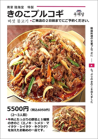 牛肉とたっぷりの野菜と5種類のきのこを加えた弊店お勧めの一品です。 (2~3人前)※ご来店の2日前までにご予約ください。