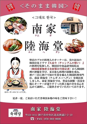当店のオーナーシェフは、韓国ソウルで生まれ育ち、実の叔母(韓国宮中食品研究院院長-韓国重要無形文化財第38号指定者)から韓国料理の真髄を学び、来日後も研鑽を積み、その豊富な知識や経験を糧に伝承の味で、本格的韓国料理の数々に自ら腕を振います。