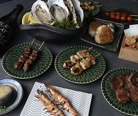 名古屋コーチンを使用したもも串やレバー串。その他にも豚串、魚介串、野菜串などを取り揃えております。
