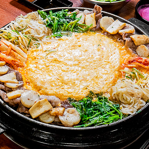 本場のチキンや韓国風中華料理(タンスユク)をはじめ、韓国デザートなど様々なメニューをご用意!イイダコと豚バラ肉を合わせた「生サムギョプサルチュクミ」やモチモチのイイダコとホルモン、エビを合わせた「チュコプセ」もおすすめです。「チーズ土鍋玉子蒸し」と「海鮮チヂミ」もイチオシなのでぜひ!