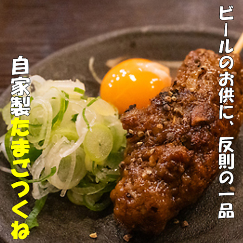 濃厚卵黄と香ばしつくねで乾杯!ビールが進む至福の一串★「自家製たまごつくね」250円(税込)