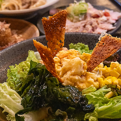 新鮮食材をふんだんに使用した『長良サラダ』。シャキシャキの食感と彩り豊かな旬の味わいをお楽しみください!