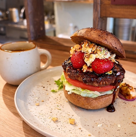 ここでしか味わえない美味しさを実現した1か月間限定の「マンスリーバーガー」。2月は昨年も大人気!自家製濃厚カカオブリオッシュに、いちごやカカオテリヤキソース、クリームチーズなどを重ねた贅沢「バレンタインバーガー2」甘みと香ばしさが重なり合う、新感覚の美味しさを楽しめる一品です。