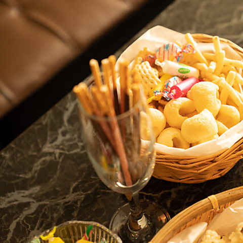 初めての方も自然と交流が生まれる社交の場として人気!ボックス席ではないため、お客様同士の距離が近く、歌い終わると全員で拍手を送り合うなど、より親密な雰囲気が特徴です♪笑顔溢れる時間をお過ごしいただけるよう、ゲームやおもちゃも多数ご用意しております。さらに、ミックスナッツをはじめ、お菓子盛りなどをご用意しております。