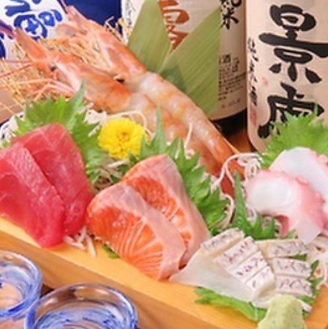 当店の海鮮は店長厳選仕入れで市場直送のため鮮度には自信があります!ホタテなどの貝類は漁師さん直送で店内のいけすで新鮮さをキープしています。このほかにも3点盛り(税込880円)、鯵のお造り(税込680円)などもご用意しております。