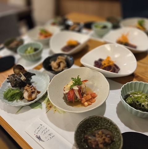 前菜盛り合わせからお刺身、焼き魚、揚げ物ete
