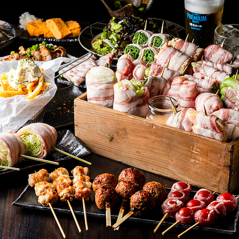 特殊な巻き方をしていてとってもジューシーな「レタス巻き」。串焼きと相性がいい「フルーツサワー」。一串一品をテーマに商品開発!世界各国の料理を表現した自慢の「串焼き」。季節に合わせて入れ替わる飲み切り「日本酒」。濃厚でしつこくない「手作りなめらかプリン」。新鮮野菜の「生野菜のフレッシュサワー」などをご用意♪