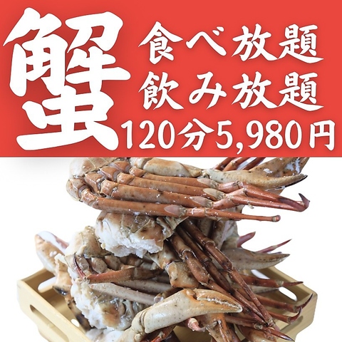 通常50種50種食べ放題飲み放題に加えて、蟹も食べ放題で5,980円です!
