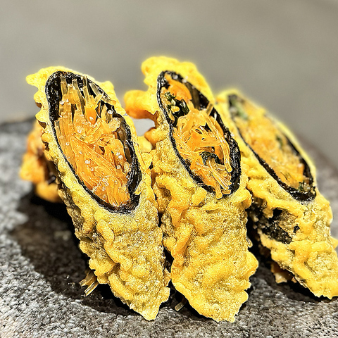 この季節はコレ。ブランド魚『みかん鯛』を握りで。