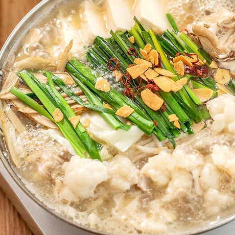 ぷりぷりの牛もつはコラーゲンたっぷりでとってもヘルシーです。※お鍋は2人前からご注文を承ります。