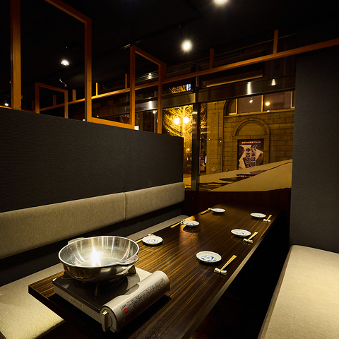 5名様よりご利用いただける完全個室席。当店唯一の”完全個室”ですご予約でお早めにお席をご指定ください。周りを気にせずにお過ごし頂けます。宴会・飲み会・女子会に◎皆さんだけで個室空間をお楽しみいただけます。美味しいご飯と、お酒で満足いくひと時をご提供させていただきます。