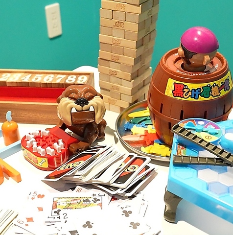 【多彩なボードゲーム】定番のトランプやバランスゲーム、ガチャなど、みんなで楽しめるアミューズメントが盛り沢山!お酒を片手にゆったりと楽しいひとときをお過ごしください。貸切ももちろん承っております◎お気軽にご相談ください♪