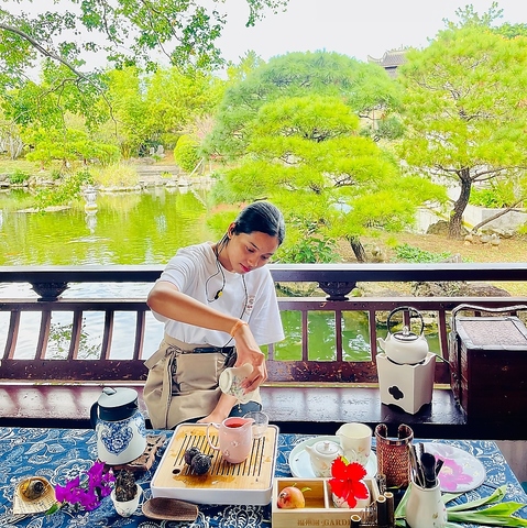 福州園庭園内でのお茶会も可能。雰囲気にぴったりの漢服を着てのドレスアップティータイムセットもあります