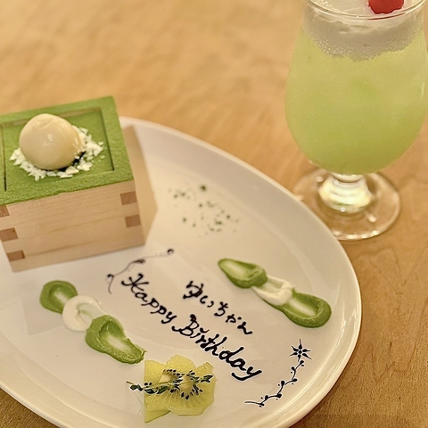 特別な日のお祝いに、メッセージ入りのデザートプレート付きの個室限定記念日コースをご用意いたします!