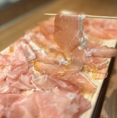 極薄スライスでふわっと溶ける味わい。香りと旨味が広がる、生ハム好き必食の一皿。