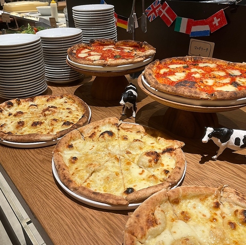 8種類の焼き立て釜焼きピザビュッフェをお楽しみ下さい!
