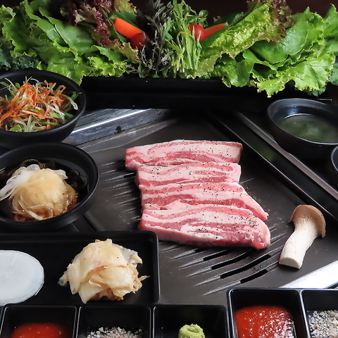 国内産の厳選豚肉を使用し、低温発酵熟成した『熟成生サムギョプサル』は必見!お野菜と一緒にどうぞ♪