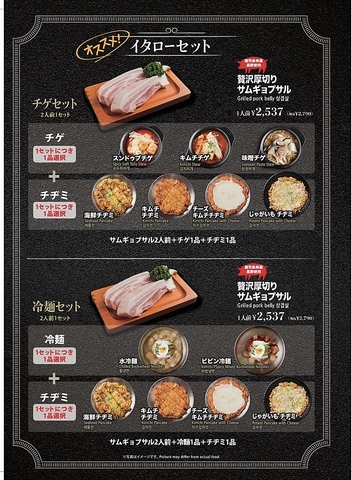 熟成生サムギョプサル、チヂミ、チゲor冷麺のセット!初めての方におすすめのセットです!
