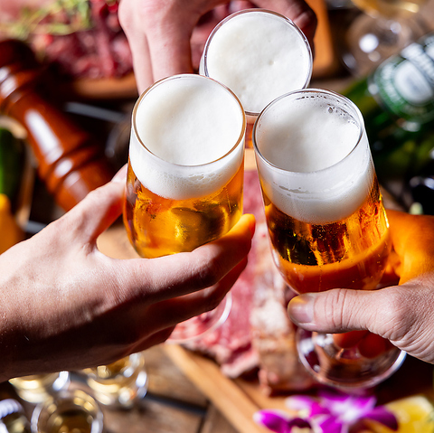 当店のBBQプランはすべて飲み放題付き!ライトはソフトドリンクのみ、学生さんやお子様にオススメ◎レギュラー(スタンダード)は、カクテル&ソフトドリンク、強いアルコールが苦手な方に大好評☆プレミアムはアルコール&カクテル&ソフトドリンクを全てお楽しみいただけるので、ワイン・ビール・果実酒を食材に合わせるのにぴったりです♪