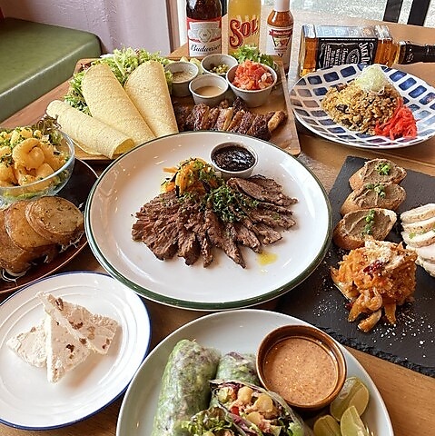 パティオ風のお洒落な店内は、照明にもこだわり時間帯に合わせて調光しています。アメリカンダイナーの要素を取り入れつつ、日常使いしやすいカジュアルな雰囲気が魅力。お祝いや記念日にもおすすめですが、お料理は一人前のボリュームで提供可能なので、おひとり様も大歓迎です!