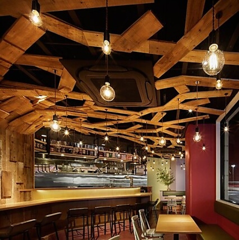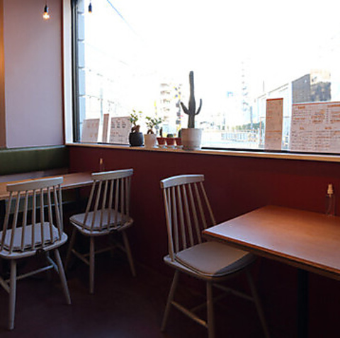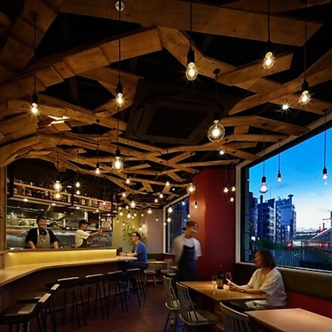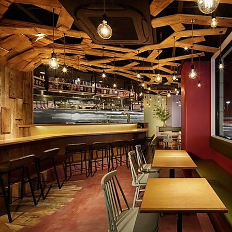 パティオ風のお洒落な店内は、照明にもこだわり時間帯に合わせて調光しています。アメリカンダイナーの要素を取り入れつつ、日常使いしやすいカジュアルな雰囲気が魅力。お祝いや記念日にもおすすめですが、お料理は一人前のボリュームで提供可能なので、おひとり様も大歓迎です!