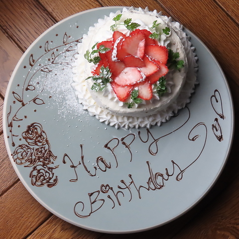 +1000円で誕生日や記念日にプレートをご用意することも可能です。プレートは予約必須になりますので、ご予約の際に店舗迄ご連絡くださいませ。