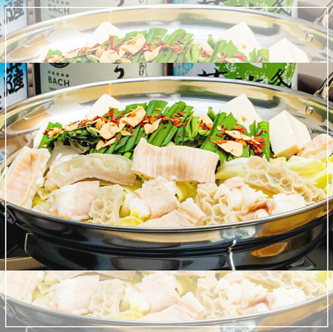 ぷりぷり食感のモツをはじめ、4種類のホルモンを使った贅沢なもつ鍋!旨味が体の隅々までしみわたるスープは、〆のちゃんぽん鍋で最後の一滴までお楽しみください☆デザート含めて全10品で4000円(税込)、飲み放題付きは6000円(税込)♪会社宴会・忘新年会・歓送迎会にぜひご利用ください!ご相談もお気軽にどうぞ!