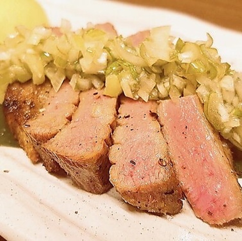 新鮮だからこそご提供できる刺しメニューが豊富。「ツラ刺し」は牛の頬肉で、一頭から1キロしか取れない部位。牛が食事するときによく動く場所なので歯ごたえもよく、濃厚な味わいが広がります。煮込み料理に使われることが多い為、刺しでお召し上がりいただけるのは貴重!まさにお肉の旨味を実感できる、自信の一皿です!
