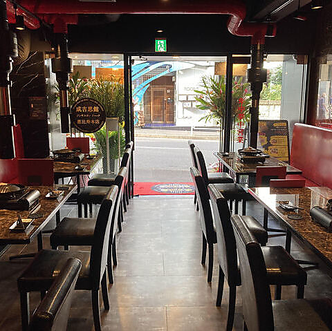 ホテルのレストランのような高級感ただよう店内は、黒と赤を基調とした非日常な空間を楽しんでいただけます。また、プライベート感あふれる半個室もご用意。1グループ4000円(税込)のお席料でご利用いただけます。寛ぎながら、またはお忍びでジンギスカンをご堪能されたい方にもおすすめ。さまざまなシーンでご活用ください