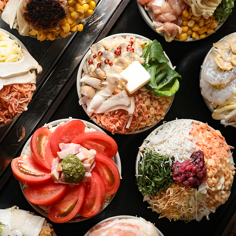 ちゃんこ系、海鮮系、肉系、チーズ&クリーム系、スパイシー・カレー系、デザート系など、30種類以上のメニューから様々な味わいを楽しめるのが魅力。さらに、味噌バターラーメンやカルボナーラ、ボロネーゼなどの変わり種もんじゃも!自分だけのオリジナルもんじゃ作りも可能です。