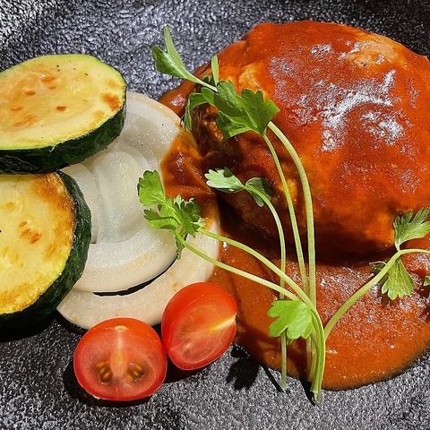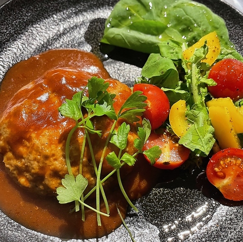 当店自慢の煮込みハンバーグは、肉の旨みたっぷりのハンバーグを、特製トマトデミグラスソースでじっくり煮込んだ逸品。ふっくらジューシーな食感と濃厚なコクが特徴です。季節の野菜を添え、見た目も味も大満足。心温まるひと皿をぜひご賞味ください。