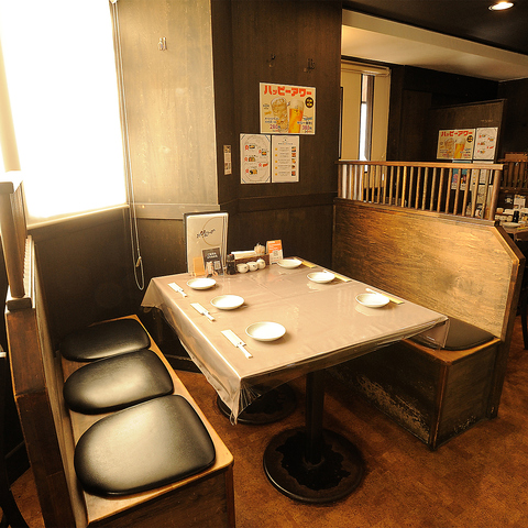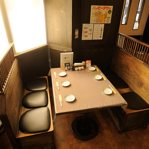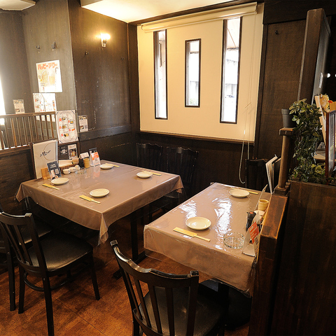 職場の同僚との飲み会や、ご友人との集まりに最適な4名様掛けのテーブル席を多数ご用意しております。美味しい料理を囲んで会話が弾む居心地の良い空間です。当店の炭火焼き鳥や洋食メニューなど、様々な逸品を皆さんでシェアしながら楽しんでいただけます◎