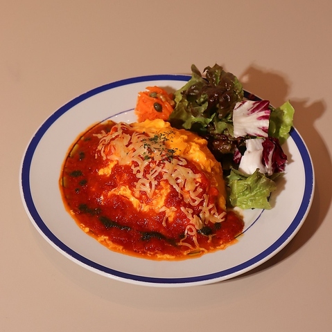 カプレーゼからヒントを得た変わり種のオムライスです。自家製のトマトソースが絶品です。