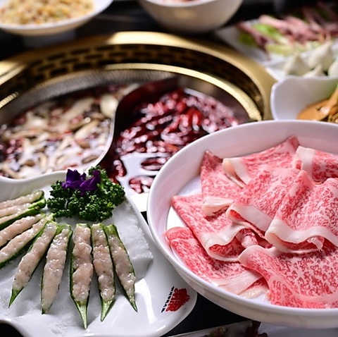 厳選したA4ランク和牛と新鮮な大海老をメインに据えた、豪華絢爛な全12品コース。秘伝のスープで煮込む本格火鍋は、選べる薬膳/麻辣の二種からお好みで。ぷりぷりの小籠包や旬野菜、〆の麺まで、全てが主役級の逸品です。特別な記念日や接待に最適。贅沢な一時をお過ごしください。