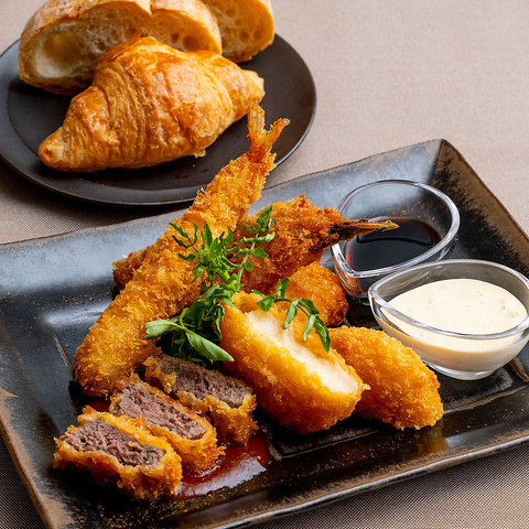 贅沢な大人のためのランチです♪国産牛サーロインのビフカツやカニクリームコロッケなどボリューム満点♪