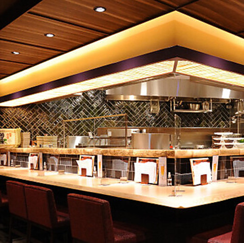 清潔感溢れる店内にオープンキッチンも完備、高級感あふれる空間でありながらライブ感も楽しめます。【東京 東京駅 駅構内 海鮮 銘酒 個室 居酒屋 お酒 宴会 刺身 日本酒 八重洲】